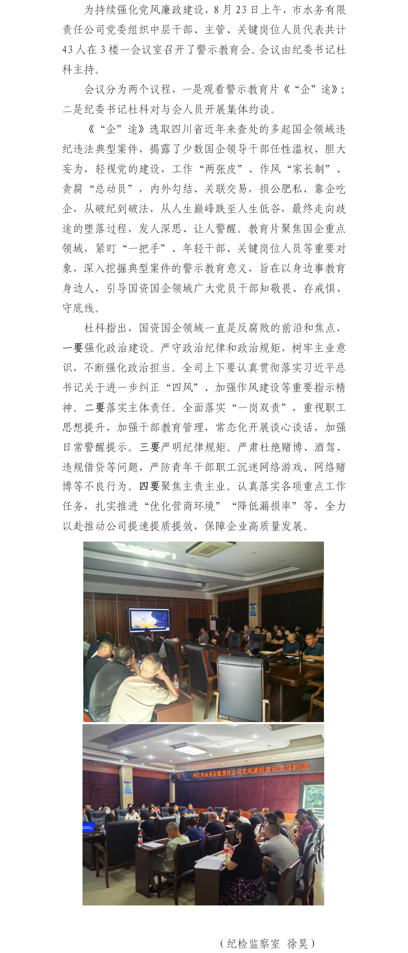 水務(wù)公司黨委組織開展警示教育