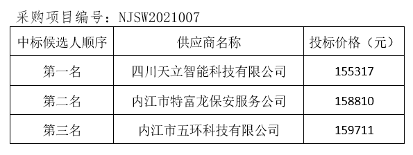 內(nèi)江市污水處理有限責任公司監(jiān)控系統(tǒng)升級改造項目評標結(jié)果公示