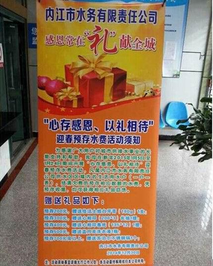 為感謝廣大用戶對城市供排水事業(yè)的長期支持和幫助,我司在2015年1月5日至1月24日期間開展“心存感恩、以禮相待”迎春預(yù)存水費活動。本次活動由客戶服務(wù)部牽頭,在白馬辦事處、物資供應(yīng)部和機關(guān)各部門的支持配合下,圓滿結(jié)束。