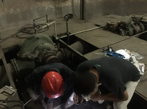 為節(jié)約生產(chǎn)成本,鍛煉員工操作技能,由二水廠員工負責對電機基礎加工改造及后續(xù)校正安裝等工作。進入7月持續(xù)酷暑,受上游強降雨影響,沱江原水濁度上漲,二水廠在處置高濁水的間隙,趕往城區(qū)水廠對1#電機基礎的鋼板進行焊接。深井泵房噪音大、空氣流通性差、溫度高,但維修人員不畏艱辛,身穿防護服,花費數(shù)天時間終于完成了電機基礎改造工作。