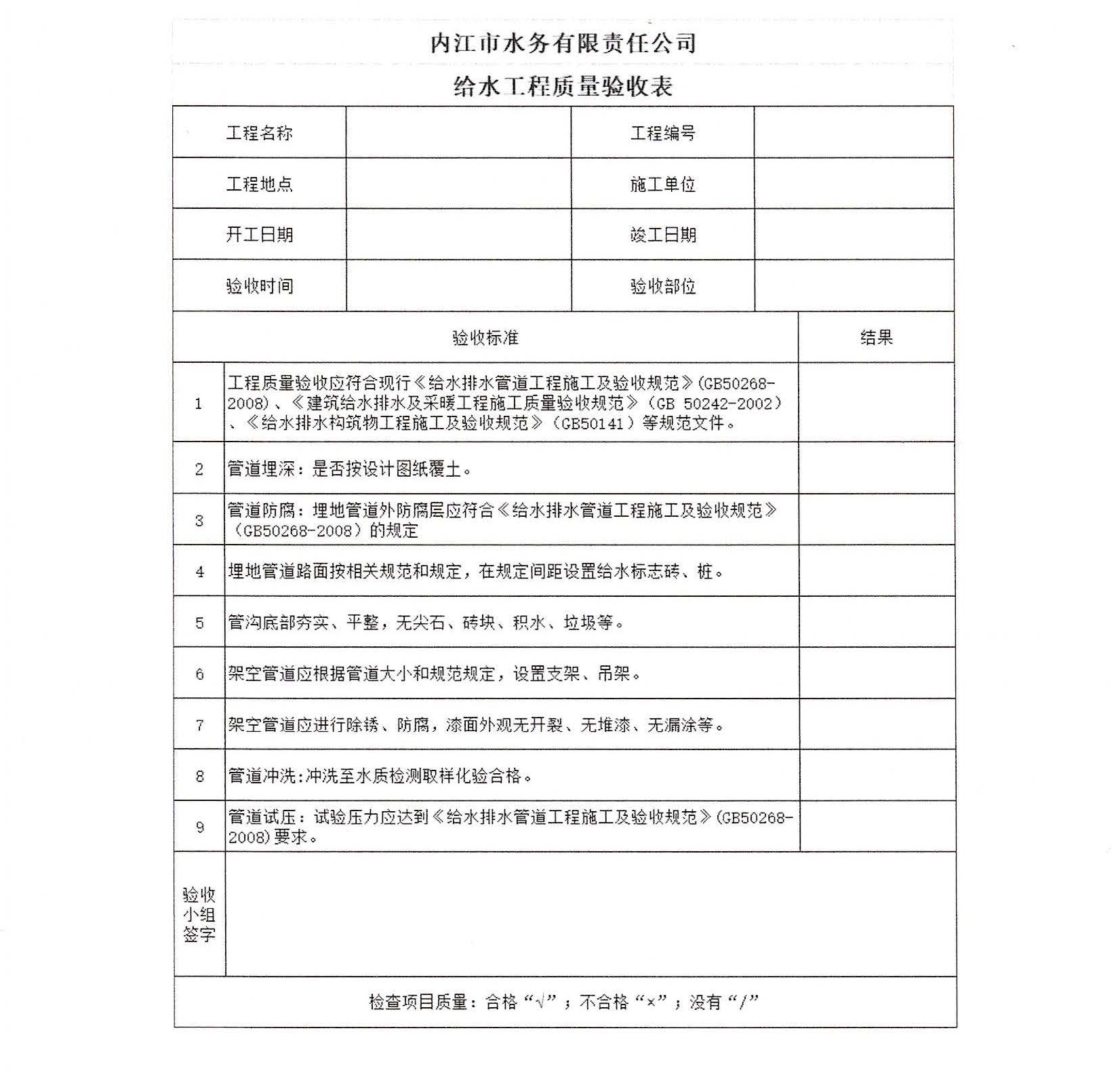 內(nèi)江市水務(wù)有限責(zé)任公司用戶報裝用水工程驗收實施細(xì)則
