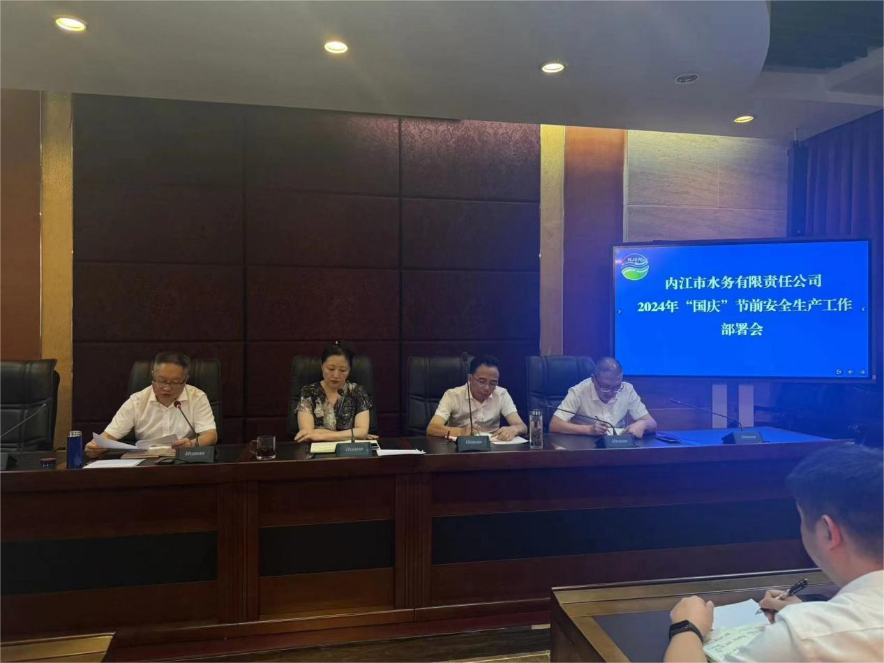 為確保國(guó)慶期間內(nèi)江城市供水安全與穩(wěn)定,9月25日下午,市水務(wù)公司在公司二會(huì)議室組織召開(kāi)2024年“國(guó)慶”節(jié)前安全生產(chǎn)工作部署會(huì)。會(huì)議由黨委書(shū)記、董事長(zhǎng)、總經(jīng)理李濤主持。公司全體中層及以上干部參會(huì)。