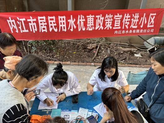 為持續(xù)推動優(yōu)化營商環(huán)境工作,落實為民辦實事服務舉措。10月23日,市水務公司客戶服務部組走進蓮安公租房、臨江花園保障性住房、廟兒山望江苑,開展了“內江市居民用水優(yōu)惠政策宣傳進小區(qū)”活動。