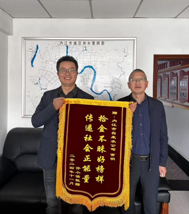 11月2日,市水務(wù)公司管網(wǎng)運(yùn)行部探漏人員官明在匯宇一品片區(qū)巡查管線時(shí),突然看到有東西在人行斑馬線上,他撿起來發(fā)現(xiàn)是一部新的手機(jī)。由于手機(jī)設(shè)置了密碼解鎖,官明只能將其帶在身上等待失主聯(lián)系,以便歸還。失主接過失而復(fù)得的手機(jī)后感動(dòng)不已,稱手機(jī)里存有大量對(duì)自己非常重要的信息,一旦丟失會(huì)給自己生活帶來困擾和不便,當(dāng)即表示要給予官明物質(zhì)感謝,被官明果斷拒絕。為表達(dá)感激之情,失主在11月4日到市水務(wù)公司送上了錦旗。