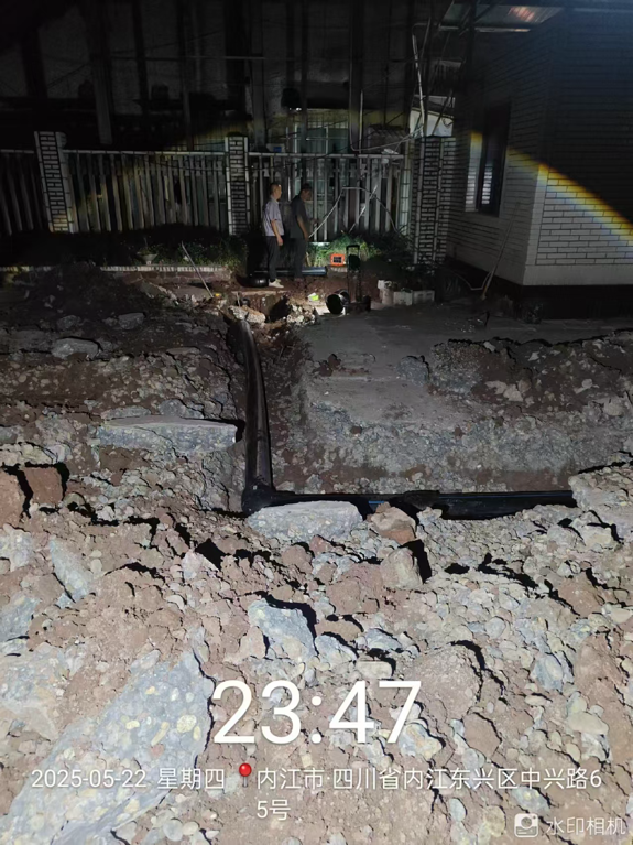 搶修現(xiàn)場,維修人員面對夜間視線不佳、高溫作業(yè)、現(xiàn)場環(huán)境復(fù)雜等多重挑戰(zhàn),爭分奪秒、迎難而上,通宵達(dá)旦開展搶修工作。次日凌晨3點(diǎn)58分,維修人員熊弈在工作群里發(fā)布消息:“東興區(qū)政府DN150鋼管因漏點(diǎn)在建筑下方無法維修,已從旁改管繞過漏點(diǎn),160PE管改管約60米,63PE管改30米,加裝50銅閘閥一只,現(xiàn)已修復(fù)通水?!敝链耍瑩屝薰ぷ鲌A滿結(jié)束,恢復(fù)正常供水。
